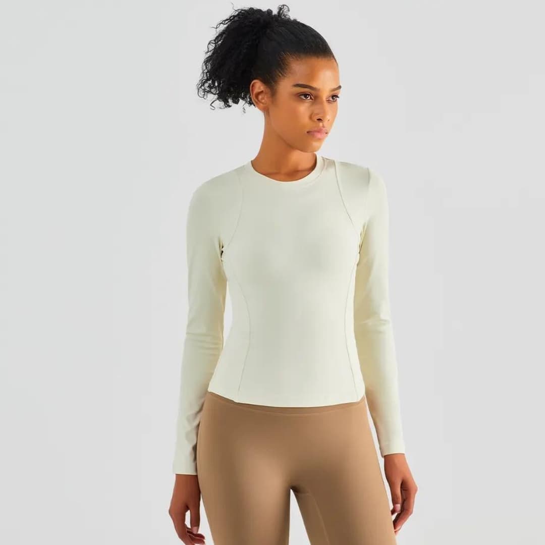 Color: Crema (Light Ivory) Camiseta Deportiva Manga Larga Cuello Redondo 80% Nylon + 20% Spandex Serie Nuls / 220g